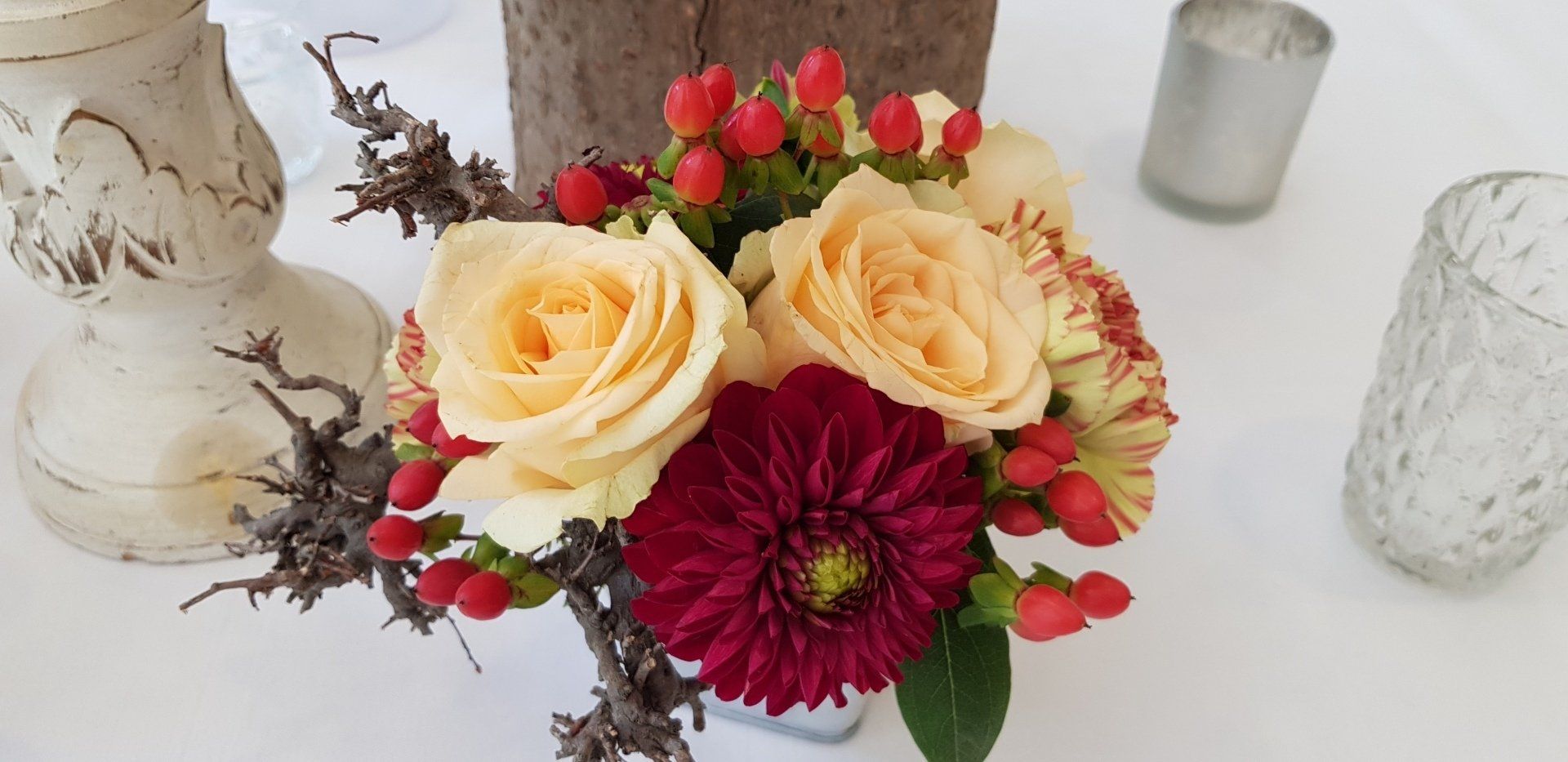 Neben den Blumen können Sie von uns direkt auch weitere Dekorationsartikel wie Kerzenständer, Staffeleien, Laternen, Hussen etc. nutzen.